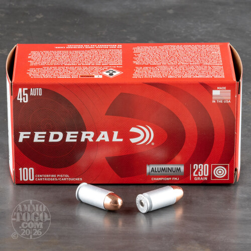 100rds – 45 ACP Federal Champion (Aluminum) 230gr. FMJ Ammo Details