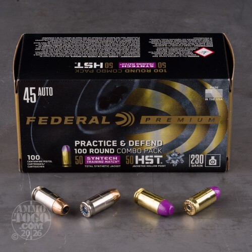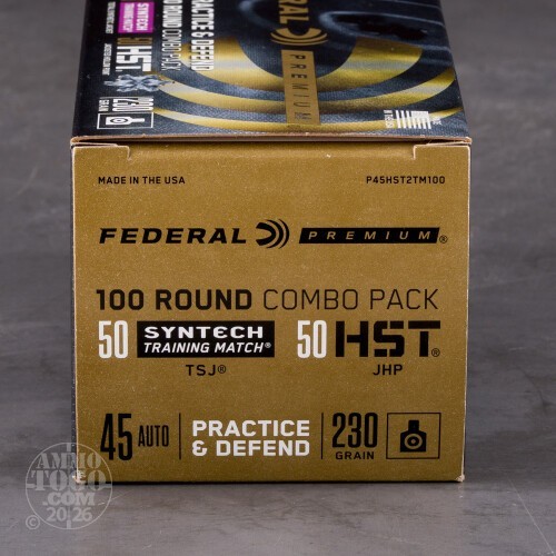 Leave a ReviewWhy Shooters and Hunters love or hate 100rds – 45 ACP Federal Practice & Defend 230gr. HST JHP & Syntech TSJ Ammo
