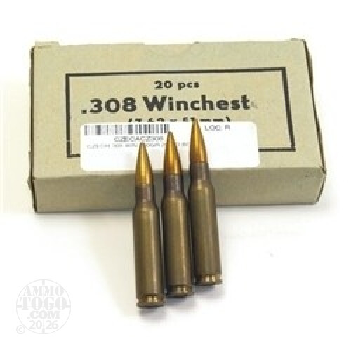 This is .308 Czech Republic Seller & Bellot Military Surplus 147gr FMJ Ammo. This ammo is manufactured by Seller & Bellot. It is Brass cased and berdan primed and mildly corrosive. It comes packed in 20rd boxes and 1060rds per case.