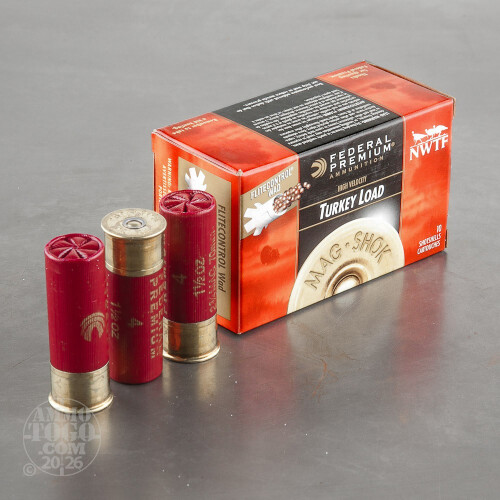 This is 12 Gauge Federal Mag-Shok 2 3/4" 1 1/2oz. #4 Turkey Load. This is an excellent turkey load. If you are lookin for a copper plated buffered shot for denser patterns and better downrange energy this is the load for you. The revolutionary Flitecontrol wad uses a rear-braking shot cup to stay with pellets longer and choke them into a lethally tight pattern. It eliminates the need for expensive aftermarket chokes and provides more pellets on target. Granulated shot buffer prevents pellet deformation, improves pattern density and penetration for great performance in the field. Muzzle velocity of 1315fps. Comes packed 10rds. per box.