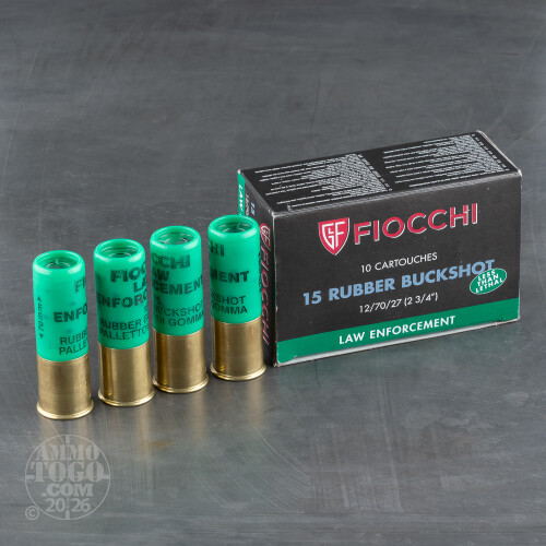 10rds – 12 Gauge Fiocchi Law Enforcement 2-3/4" 15 Pellet Rubber 00 Buckshot Ammo
