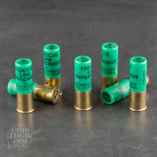 10rds – 12 Gauge Fiocchi Law Enforcement 2-3/4" 15 Pellet Rubber 00 Buckshot Ammo Details