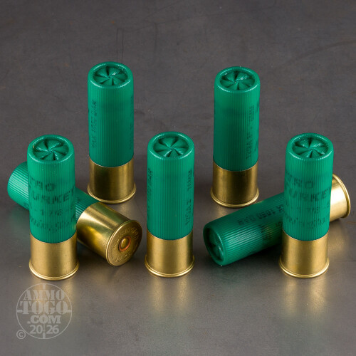 It’s a powerful pattern, too. Remington’s Power-Piston wad erupts from the barrel at a velocity of 1,330 fps and immediately pulls back to let such a potent formation of shot fly fast and true. This magnum shell’s powder doesn’t leave behind much residue following ignition, and its high-brass hull will serve as a great reloading component.