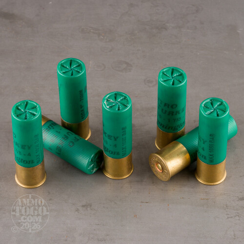 Features such as solid tungsten alloy shot, propellant made of leftover fuel from the Apollo 11 mission, and a shell head carved from the salvaged hull of the Titanic may make a turkey load extremely effective, but they also make it extremely expensive. If you’d like to put the hurting to Mister Tom Turkey without parting with too much money in the process, then we recommend this hard-hitting 12 Gauge shotshell from Remington’s Nitro Turkey line of ammunition.This shell is loaded with 1 7/8 ounces of #4 shot. Although made of lead, Remington’s unique manufacturing process has made this shot as hard and round as any copper plated alternative. That means it will not only avoid deformation while rocketing down the bore, but deliver stellar energy on impact before drilling deeply through its target. In conjunction with its specially formulated propellant and Power Piston wad, this shell’s shot can deliver an 80 percent pattern density from a very respectable distance. All that’ll remain to worry about is which bread you’re going to use to make stuffing.