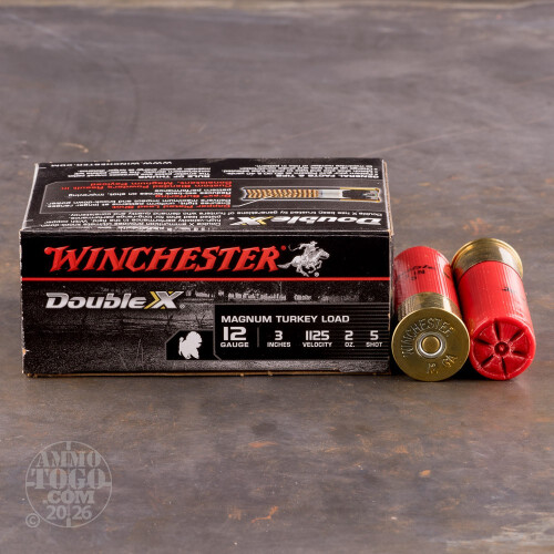 This is 12 Gauge Winchester Double-X 3" 2oz. #5 Shot Ammo. Double-X ammunition provides the ultimate knock-down, high-velocity performance in the field. With copper plated lead shot for long-range performance, Double-X has been trusted by generations of hunters who demand quality and consistency. It comes packed in 10rd. boxes. Muzzle Velocity: 1125 fps.