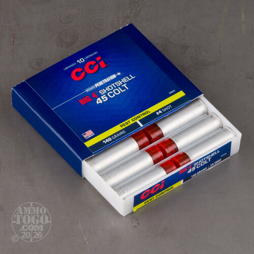 Leave a ReviewWhy Shooters and Hunters love or hate 10rds – 45 Long Colt CCI Pest Control Big 4 140gr. #4 Shot Ammo