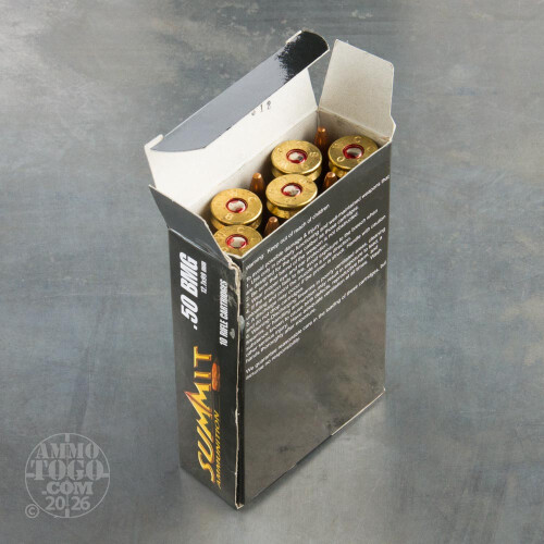 This is 50 Cal. BMG Summit Ammunition 649gr. M-33 Ball Ammo. Summit Ammunition has been manufacturing 50 Cal. BMG for over 10 years and they manufacture a premium quality product. They are a fully licensed and insured manufacturer. This ammo is loaded with NEW Winchester factory primed brass, New USGI powder and new USGI 649gr. M-33 ball bullets. This is some of the best 50 cal. BMG ammo we have had in a long time. This ammo is packed in 10rd. boxes.