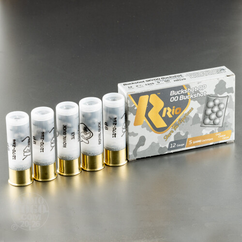 This is 12 Gauge Rio Royal 2 3/4" 9 Pellet Full Power 00 Buckshot Ammo. This ammo is manufactured by Rio Ammo, the largest shotshell manufacturer in the world. This ammo has amazingly tight patterns. This is some excellent buckshot. This ammo comes packed in 5rd. boxes, 250rds. per case.