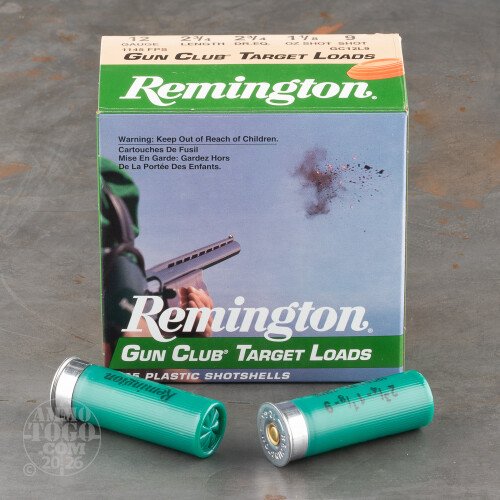 250rds - 12 Gauge Remington Gun Club 2 3/4" 1 1/8oz. #9 Shot Ammo Details