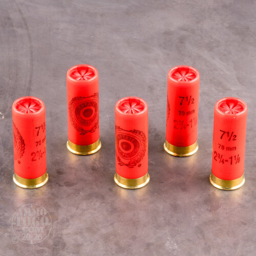 This 12 gauge ammunition from Estate is a cost-effective choice for taking down clay targets and upland game. These shells come in a bulk case of 250, giving you plenty of action for your dollar. Each 2-3/4" shell fires a 1-1/8 oz. load of #7.5 shot at 1,145 feet per second. This results in great close to medium range patterning and relatively low felt recoil. Estate ammo is a subsidiary of the Vista Outdoor Group along with reputable brands like Speer, Federal, and BLACKHAWK!-