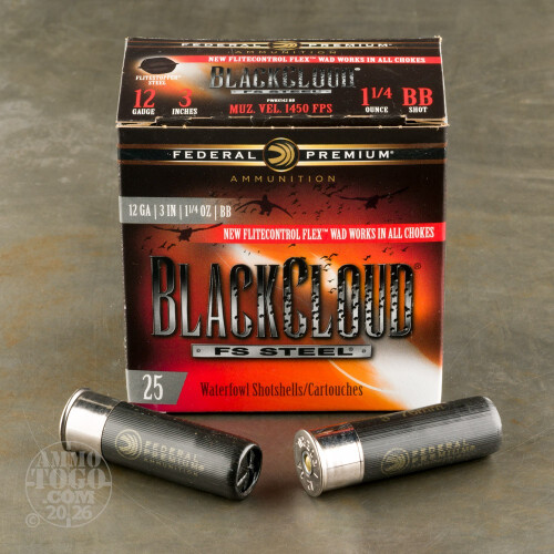 25rds - 12 Gauge Federal Black Cloud Flitestopper 3" 1-1/4oz. BB Steel Shot Ammo