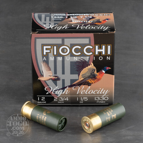 250rds - 12 Gauge Fiocchi High Velocity Hunting 2 3/4" 1 1/5oz. # 7 1/2 Shot Ammo Details