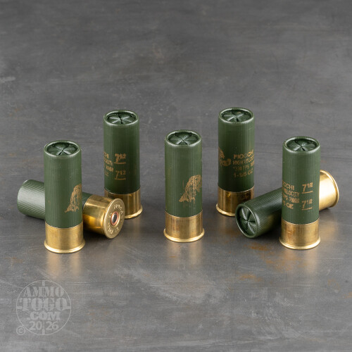 Perfect for doves, quail, snipe, woodcock, and other upland game birds, this Fiocchi High Velocity Hunting ammunition gives provide hunters a boosted-velocity bird load without the punishing recoil that often accompanies a heavier shot load. Each factory fresh 2 ¾ inch shotshell is loaded with 1 ⅕ ounces of quality #7 ½ shot. Delivering plenty of bang for your buck, these 12 gauge loads are an affordable option for budget-conscious hunters. Featuring high-brass cases, pre-fractured wads, and specially formulated powders, Fiocchi High Velocity Hunting loads deliver reliable shot patterns and an enjoyable shooting experience.