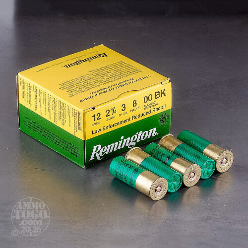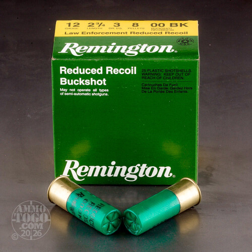 250rds – 12 Gauge Remington LE Reduced Recoil 2-3/4" 8 Pellet 00 Buckshot Ammo Details
