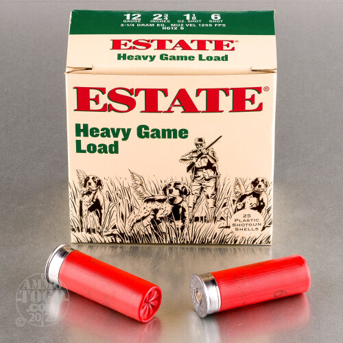 This is 12 Gauge Estate Game and Target 2 3/4" 3 1/4 Dram 11/8oz. #6 Shot Ammo. Estate Cartridge shotshells may be used for a variety of applications both in the field or at the range. Muzzle velocity of 1255fps. This ammo is made in the USA and comes packed 25rds. per box.