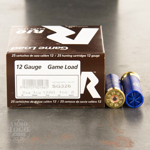 25rds - 12 Gauge Rio Game Load 2 3/4" 3 1/4 Dram 1 1/8 oz. #6 Shot Ammo