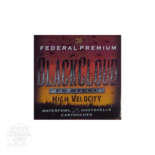This is .12 Gauge Federal Blackcloud 3" 1 1/8oz #4 Steel Shot Ammo. Federal designed the Black Cloud line of ammo with the duck hunter in mind. The proprietary FliteControl wad gets there faster and FliteStopper steel shot cuts on impact for more devastating penetration. Black Cloud uses a 40%-60% mixture of FliteStopper steel and Premium Steel shot to provide the most consistent pattern with the most stopping power on the market. Safe for all steel-rated barrels, Federal Black Cloud is the must have round for the serious waterfowl hunter. Muzzle velocity of 1635fps. This ammo comes packed in 25rd. boxes, 10 boxes per case.
