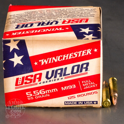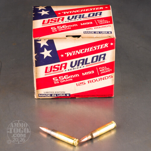 Toot toot! That’s the sound of the AR-15 train. Don’t let it leave the station without you! Order a behemoth 1,250-round case of 5.56x45 USA VALOR label ammunition by Winchester and you’ll be able to train with your AR-15 all day!Need basic 5.56 for all your recreational shooting needs? You’re looking right at it! This M193 spec ammo is loaded with standard nonmagnetic FMJ projectiles, which wear the gilding metal jackets they need to avoid jamming, deforming or fouling the barrel with excessive residue. These accurate little bullets may not expand after impact, but they do hit hard nevertheless.