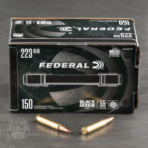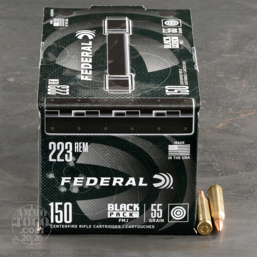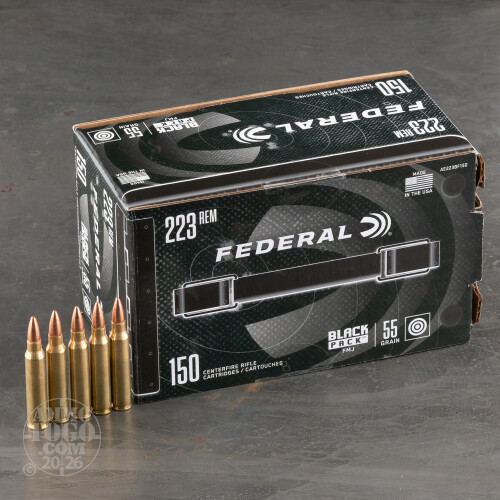 150rds – 223 Rem Federal Black Pack 55gr. FMJ Ammo