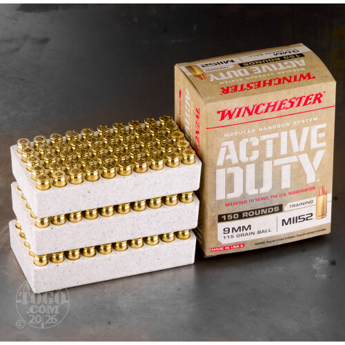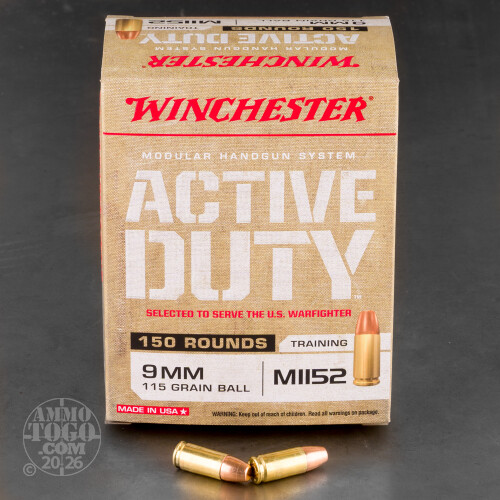 150rds – 9mm Winchester Active Duty 115gr. FMJ M1152 Ammo