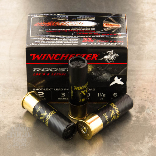 Winchester designed the 12 Gauge shells to help you take down more pheasants. These 3" hulls are filled with 1-1/2 oz. of #6 shot and achieve a muzzle velocity of 1,300 feet per second. Rooster XR loads utilize Shot-Lok technology to give you deeper penetration and great terminal performance. Try out a 15 round box and see why so many people count on Winchester ammunition to get the job done.-