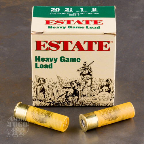 25rds - 20 Gauge Estate 2 3/4" 1oz. #8 Shot Heavy Game Load Ammo