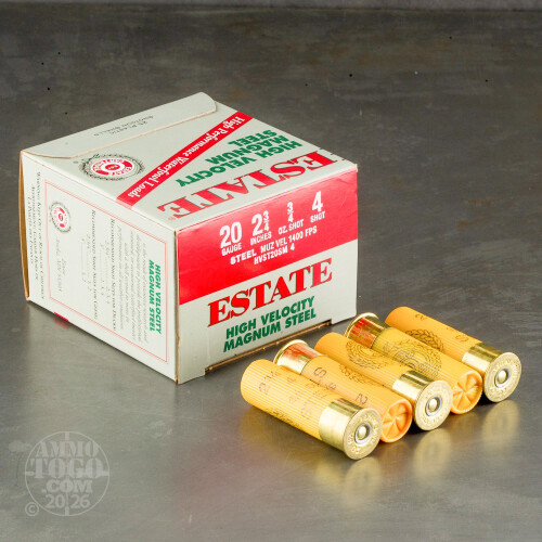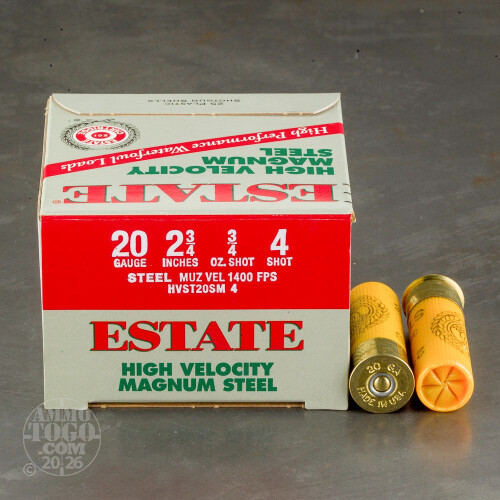 25rds - 20 Gauge Estate HV 2 3/4" 3/4oz. #4 Shot Steel Ammo
