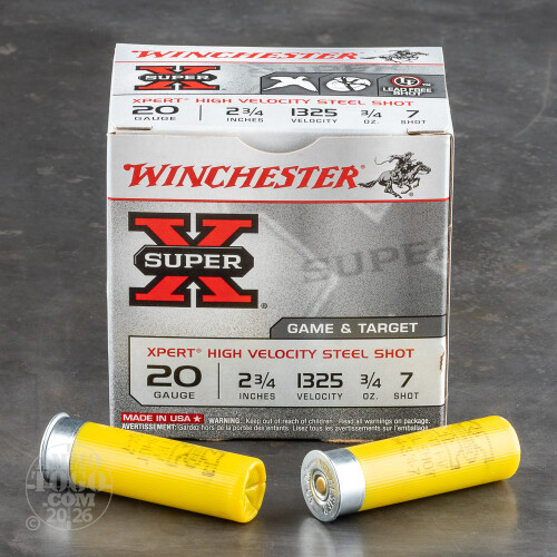 100rds – 20 Gauge Winchester Super X Xpert 2-3/4" 3/4oz. #7 Steel Shot Ammo Details