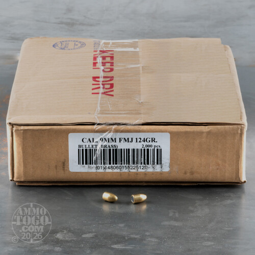 2000pcs - 9mm .356" Dia Armscor 124gr. FMJ Bullets Details