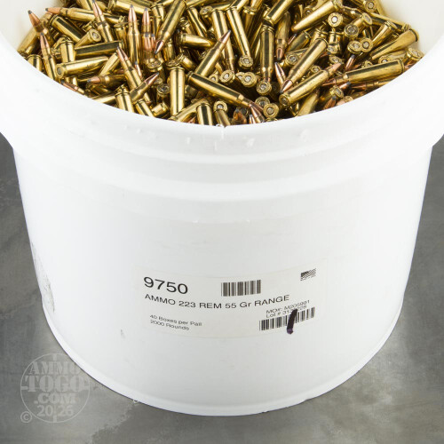 This is .223 Hornady Range 55gr. Soft Point Bulk Bucket Ammo. This is some great range ammo for Modern Sporting type rifles. These rounds are tipped with Hornady's general purpose 55gr. SP bullet. Primers are marked H. F. This ammo is brass cased, boxer primed, and non corrosive. This ammo comes packed loose in a 2000rd. sealed bucket.