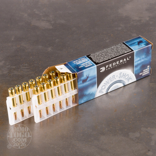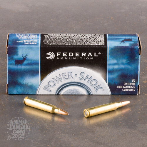 Featuring traditional lead core projectiles, these affordable Federal Power-Shok loads are perfect for hunting small to medium game animals, predators, and varmints. Each factory fresh round is loaded with a 64 grain jacketed soft point bullet. With a soft lead core enclosed by a strong copper jacket left open at the tip, this classic design provides impressive terminal mushrooming.