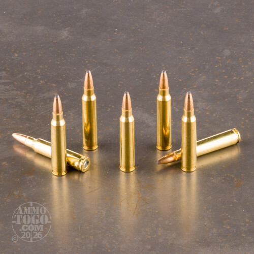 These rounds feature reliable Federal primers, powder, and reloadable brass. Leaving the muzzle at a velocity of 3050 feet per second, each round delivers a muzzle energy of 1332 foot pounds. This .223 Remington ammunition comes packed in 20-round boxes with 200 rounds per case.