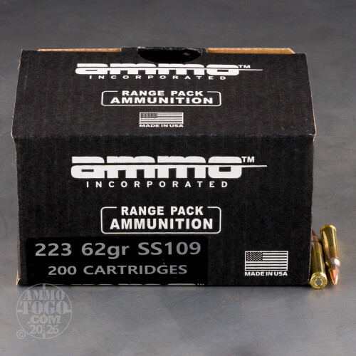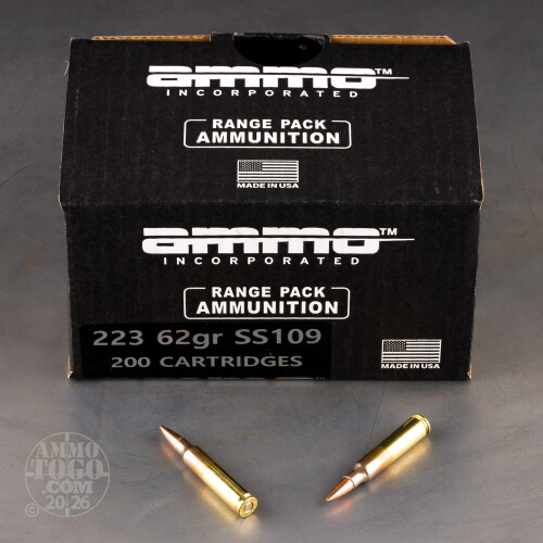 200rds – 223 Rem Ammo Inc. 62gr. FMJ SS109 Ammo