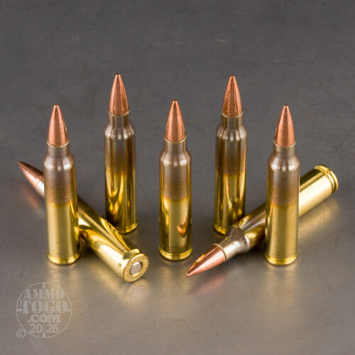Do you want a convenient little stash of M855 ammunition? Then you might be interested to know that SS109 ammo is essentially the same exact thing!This American-made 223 Rem cartridge sports a FMJ bullet. Its core is not made of solid lead, however. Just beneath this bullet’s jacketed nose sits a seven-grain steel tip, which makes the FMJ hard enough to pierce sheet steel, light body armor, vehicle doors, and a variety of other common barriers. The bullet is magnetic, and it’s probably going to damage any steel target it hits, but if that’s cool with you then you and your AR-15 are going to love this 223 ammo!