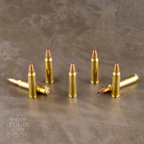 Some varmints like digging holes alongside your home’s foundation. Others place their holes in pastures – each one a potential ankle injury for an unsuspecting cow. Some varmints are gracious enough to mind their own business, but at the end of the day they’re all fun to shoot. Here’s the American-made 223 Rem ammo you need to send any varmint packing!This cartridge is armed with a 40 grain polymer tipped projectile. That’s over 25 percent lighter than what’s normal for a 223 round, which means its going to supply an outstandingly flat trajectory at close-to-medium range. The accurate little bullet features a solid lead core and specially engineered thin jacket that deliver fast and explosive fragmentation immediately following impact. It’s a bit like shooting a miniature grenade at small game!