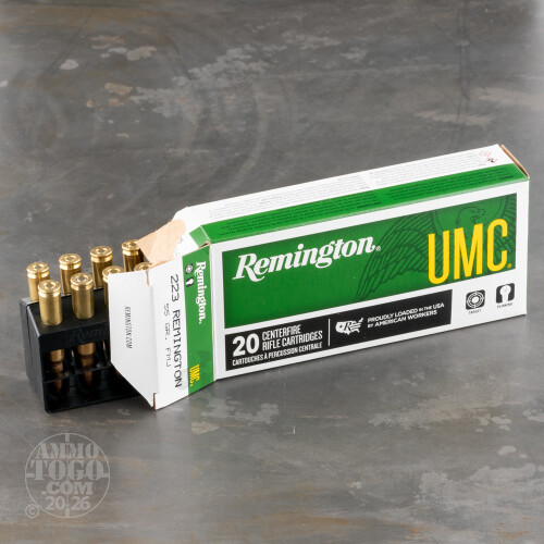 This is .223 Remington UMC 55gr. Full Metal Jacket Ammo. This ammo is brass cased, boxer primed and 100% non-corrosive. This is some great plinking ammo for your AR-15 or Mini-14. This ammo is packed in 20rd. boxes, 200rds. per case.