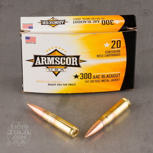Maybe one day Advanced Armament Corporation will develop a 300 AAC Blackout rifle that doesn’t require ammunition. We’re all for it. But until pigs start flying, you’d better stock up on the materiel you’ll need to make full use of your AR at the rifle range.This is Armscor’s supersonic 300 BLK. Unlike a 200 or 220 grain projectile, the 147 grain bullet attains a muzzle velocity well in excess of the speed of sound, so it will issue a sharp cracking report upon ignition. The full metal jacket lacks any features that would have enabled it to expand after impact. That’s what makes it the economical choice for target practice and high-volume shooting!