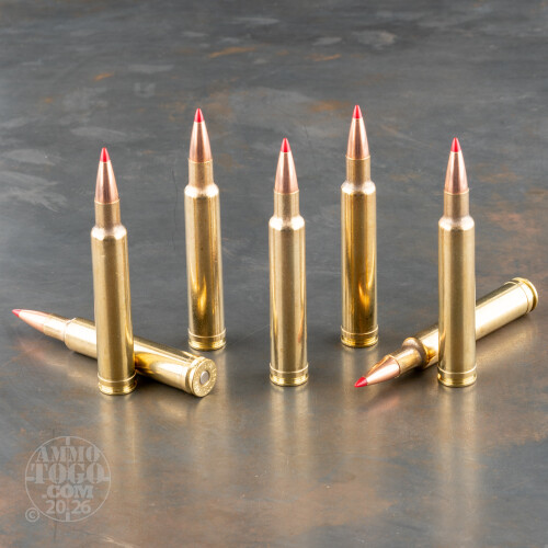 When you chamber this 300 Weatherby Magnum cartridge by Hornady, you’ll be able to bag pretty much any whitetail or elk you see no matter how far away it’s standing. That’s because the Precision Hunter round’s 200 grain ELD-X projectile couples impressive stopping power with unerring accuracy.The ELD-X sports Hornady’s proprietary InterLock ring, a feature that mechanically fastens its core and jacket soundly together. The ELD-X therefore retains up to 60 percent of its weight when it strikes its target from fewer than 400 yards, and up to 90 percent much farther on out. The ELD-X is equipped with a polymer tip that initiates lethal expansion just after the moment of impact, so few creatures that walk the earth could stand up to a well-placed shot with this round.
