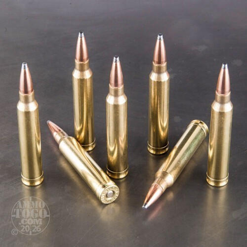 We’ll cut you a deal. You order this ten-box trove of Hornady American Whitetail 300 Win Mag, and we won’t warn the deer that you’re coming for them!Hornady’s own 150 grain InterLock takes deer’s names and kicks deer’s butts. It features the most aerodynamically efficient profile a soft point can have, per Hornady, owing to its narrow point, sleek secant ogive geometry, and ideal bearing surface for its caliber. The low-drag, high-stability bullet has an extraordinary G1 BC (for a soft point) at 0.452, and can easily conserve around two-thirds of its starting velocity at 500 yards.
