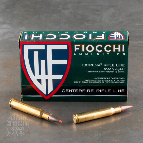 This is .30-06 Fiocchi Extrema Hunting 150gr. Super Shock Tip Ammo. This ammunition is a great option for hunting whitetail deer and gives you deadly results every time thanks to the accurate and explosive SST polymer tip projectile. This ammo is brass cased and boxer primed, it comes packed in 20rd. boxes with 10 boxes per case.