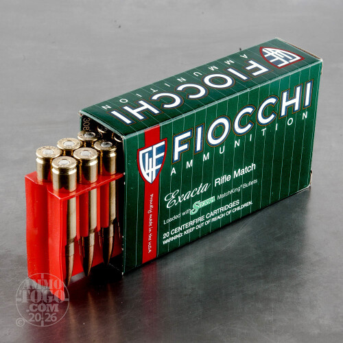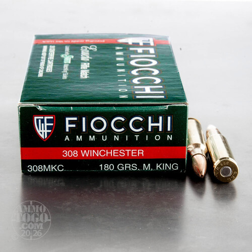 This is .308 Win. Fiocchi 180gr. Sierra MatchKing Hollow Point Ammo. This ammo is made with match grade components and is very accurate. It comes boxer primed, 100% non-corrosive and reloadable brass cases. This ammo comes packed in 20rd boxes and 200rds to a case.