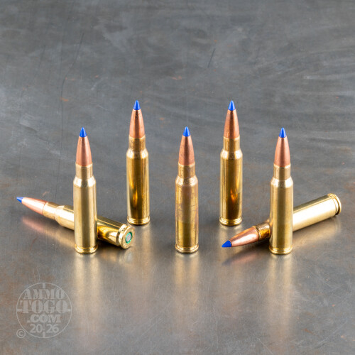 Each TSX bullet is topped with a special polymer tip designed to increase ballistic coefficient and initiate faster, more reliable expansion. Leaving the muzzle at a velocity of 2820 feet per second, these TTSX projectiles deliver 2649 foot pounds of muzzle energy.