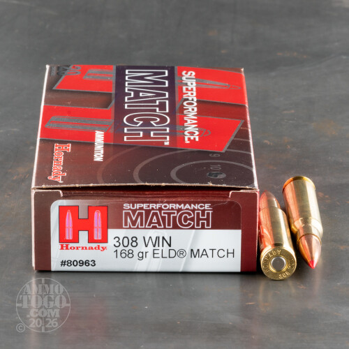 200rds – 308 Win Hornady Superformance Match 168gr. ELD Match Ammo