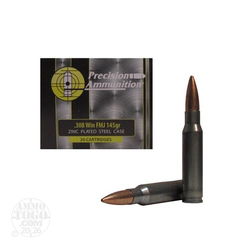 200rds - 308 Win. Ruag 145gr. FMJ Zinc Plated Steel Case Ammo