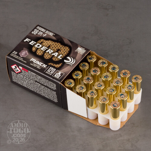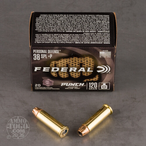 Don’t punch the threat. Punch them – with Federal Premium’s Punch ammunition! This 38 Special +P ammo is priced a little friendlier because it’s not engineered for law enforcement applications, but it’s still equipped to turn your revolver into an effective tool for self-preservation.An overpressure round like this amplifies a 38 Special revolver’s muzzle velocity: 1,000 fps out of a 4” test barrel’s muzzle. The bullet flies flatter and strikes its target with relatively greater kinetic energy as a result. Just exercise caution, as this ammo will cause firearm damage and pose a chance of injuring the shooter if it is fired in an older 38 Spl firearm that isn’t rated for +P. Safe for all 357 Mag firearms, though!
