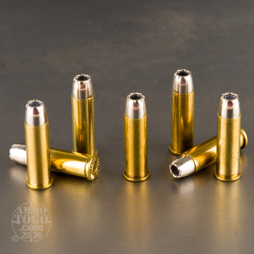 Speer Gold Dot. PMC Bronze. It’s not uncommon for ammunition manufacturers to produce a line of ammunition named after a precious metal that it doesn’t actually contain. In that tradition, Winchester offers their Silvertip series ammunition: 100% silver-free, but perfectly effective for self-defense!This cartridge’s 110 grain jacketed hollow point wears a thin plating of silvery nickel. It serves no real purpose beyond looking pretty. But Winchester doesn’t rely on gimmicks in order to earn your business! Between its hollow point nose cavity, symmetrically notched rim, and carefully engineered jacket profile, the Silvertip bullet does reliably exhibit the uniform terminal expansion that halts a determined attacker’s advance with proper shot placement.
