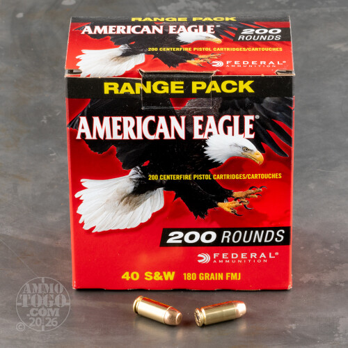 200rds – 40 S&W Federal American Eagle 180gr. FMJ Ammo Details