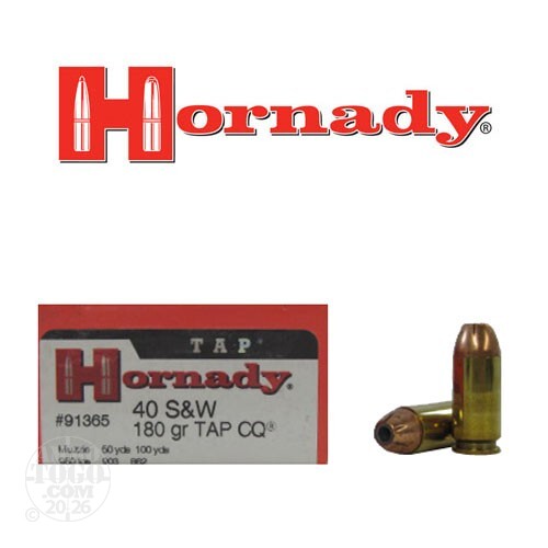 200rds - 40 S&W Hornady Tap LE Close Quarters (CQ) 180gr. HP Ammo Details