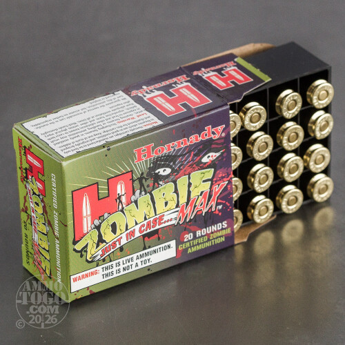 Delivering a muzzle velocity of 1045 feet per second, these rounds produce 400 foot pounds of zombie-stopping energy. This new production ammunition is non-corrosive, boxer primed, and features reloadable brass casings.