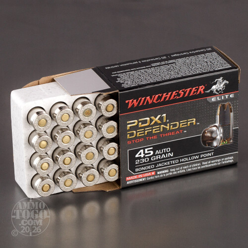 200rds – 45 ACP Winchester Defender 230gr. PDX1 Bonded JHP Ammo Details